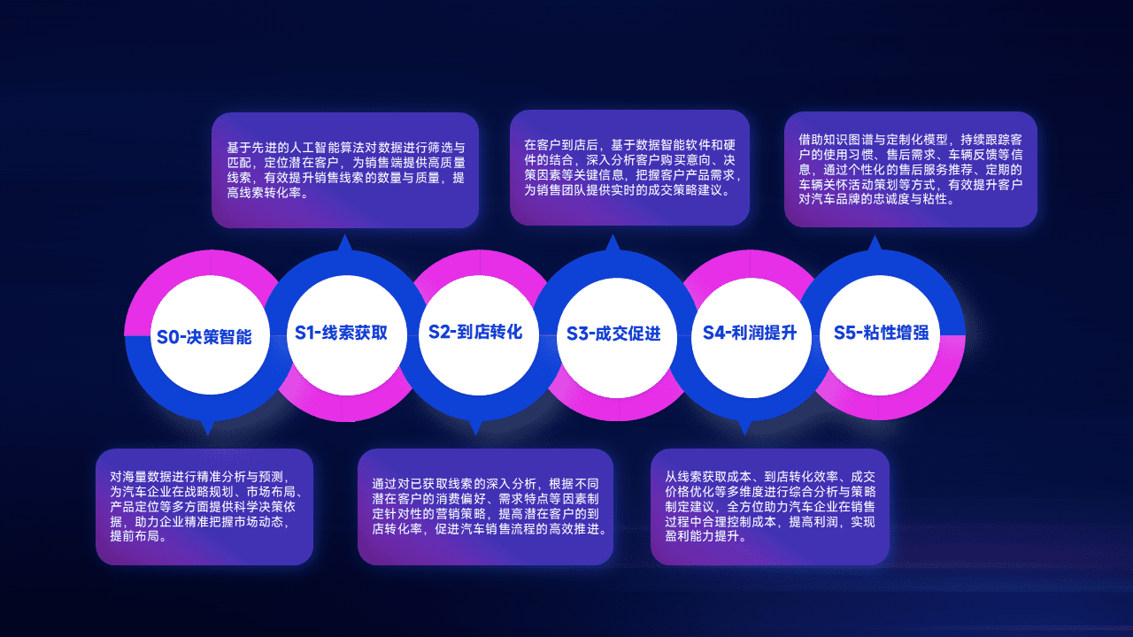 通过拓宽潜在客户来源、、、、优化线索分配并提高到店转化率,,,,以增强销售效率。。同时,,,利用线索数据不断优化分析模型,,有效提升转化率,,,扩大营销影响力。。。。